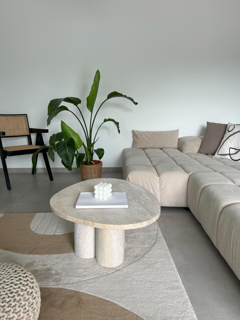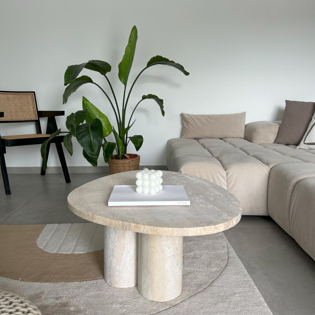 Optez pour la table basse en travertin Amsterdam et redéfinissez l'esthétique de votre intérieur.
