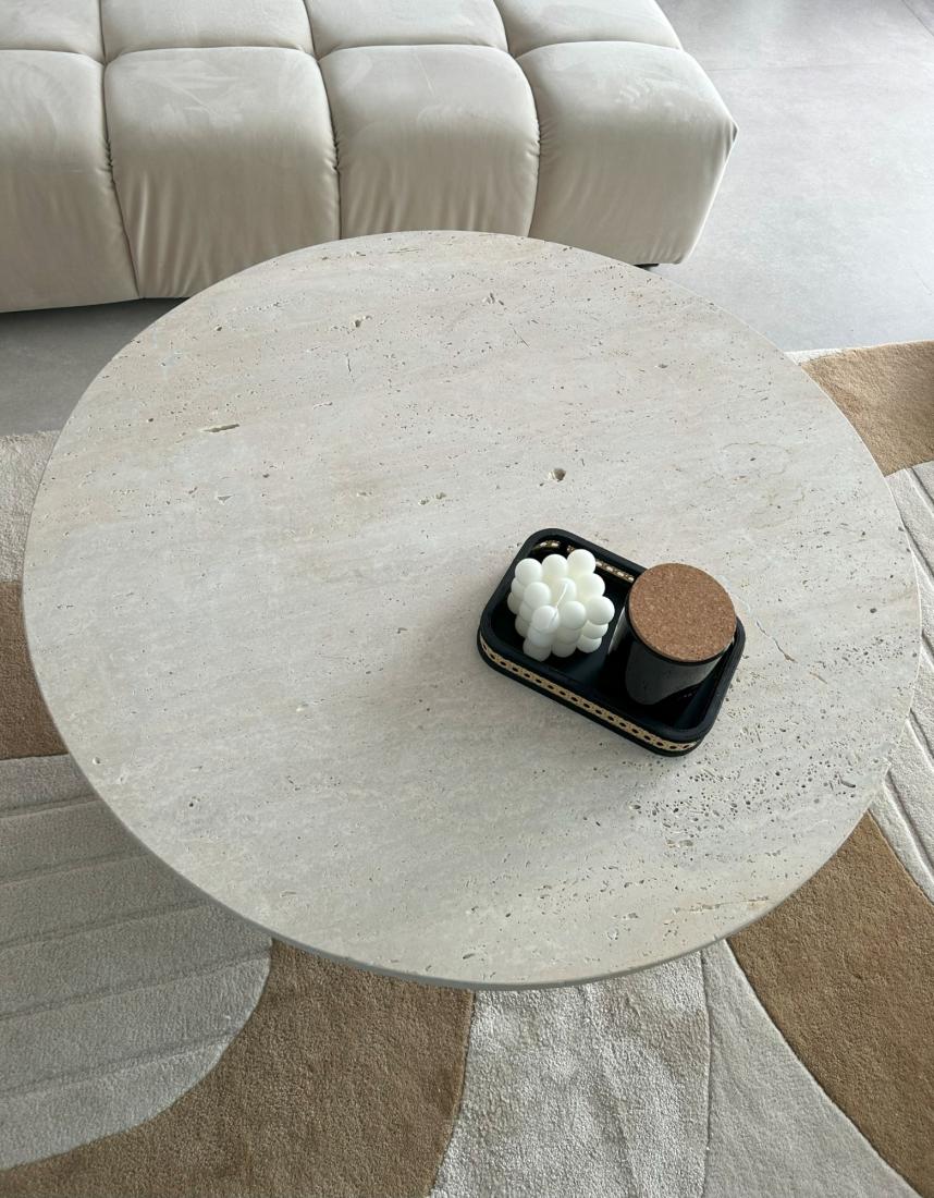 Plongez dans l'essence de la sophistication avec notre table ronde en travertin, le modèle Luxembourg.