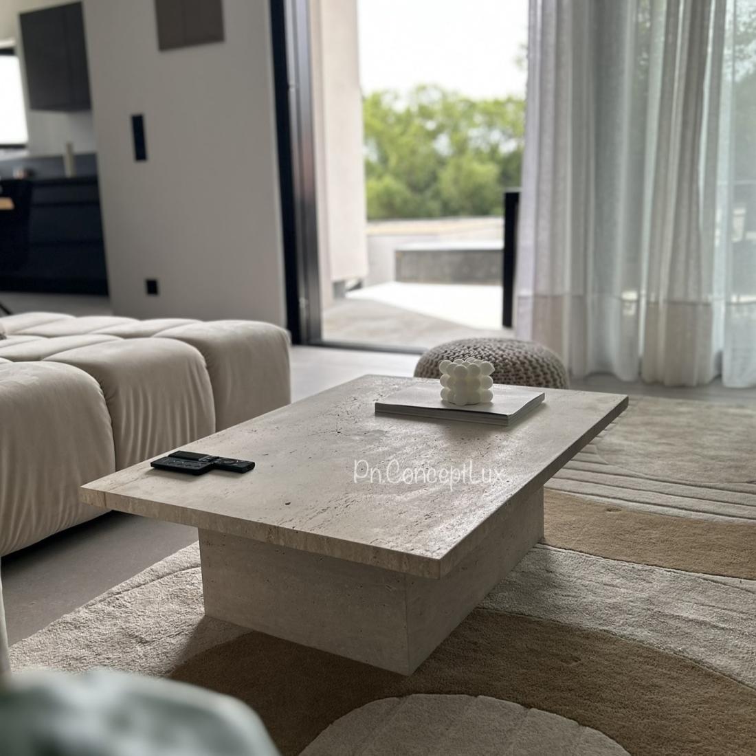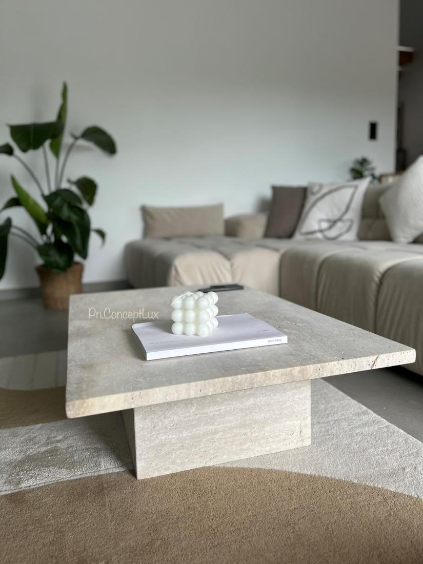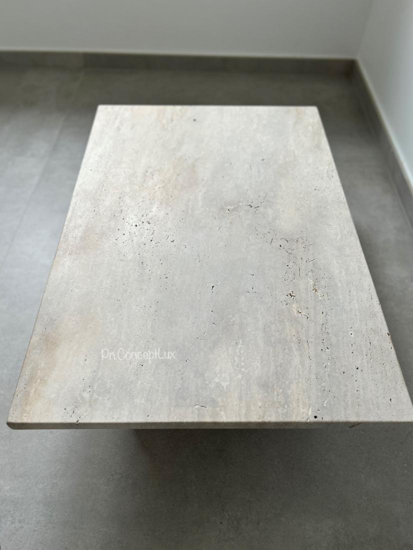 Introduisez une touche d'élégance intemporelle dans votre espace de vie avec les tables en travertin Montreux.